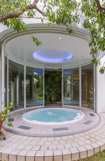 Lumicène est une véranda en aluminium pivotante sur elle même, permettant ainsi de se trouver à l’intérieur de la maison durant la saison froide, et à l’extérieur en saison chaude.